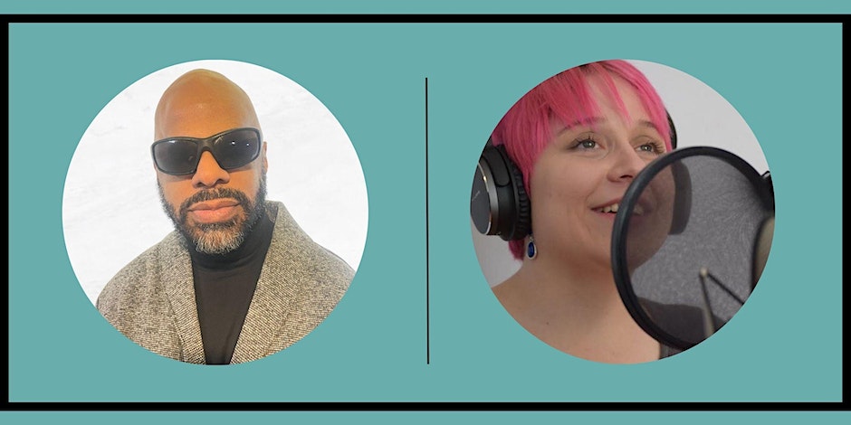 Image Description: Side-by-side photos of this conversation’s guests, Thomas Reid and Colleen Connor. On the left, Thomas, a brown-skinned Black man with a smooth-shaven bald head and a full, neat, salt-and-pepper beard, smiles into the camera. He wears dark shades and a gray and black sweater with a black turtleneck. On the right, Colleen, a non-binary, white person with pixie-cut, pink hair, smiles while speaking into a microphone with a pop filter.