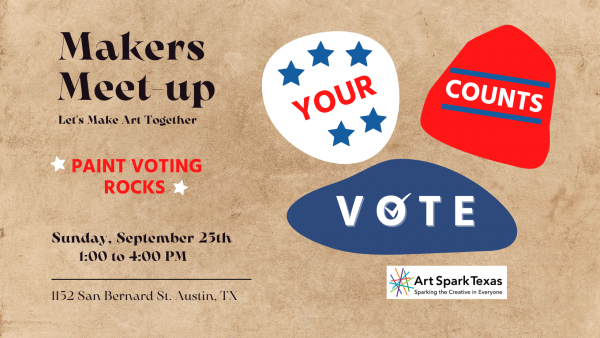 Rock the Vote at our Monthly Makers Meet-Up! Join us to paint Voting Rocks – Bring your creative ideas to paint the 3-4″ rocks we will have on-hand. The idea is to paint voting reminders and positive messages, then take your rocks with you to leave them around town for others to see. If you want BIGGER rocks just BYOR (Bring Your Own Rocks)! It’s free to participate and there will be snacks! Participants have the option to join either virtually or in-person. Use this link to participate virtually.