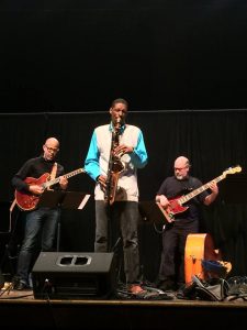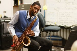 Quamon decided when he was a young boy watching Sesame Street that the saxophone was it! There was a segment that showed the making of a saxophone, the keys and how it sounded. He remembers thinking, “Whatever that is, I want to do that.” That happened again when he heard the EWI (Electronic Wind Instrument) at a NAMM Music Convention. Now, he plays the EWI with its wide piano range, as well as the saxophone, because the EWI diversifies “my musical voice.” After the Sesame Street experience, his family started him on the violin, but as soon as he got to the seventh grade, it was saxophone all the time.