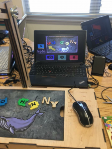 The Edge of Imagination Station is a portable stop motion animation studio. He wanted to simplify the process of computer animation and make it more accessible to the general public. The station consists of a computer or laptop attached to a camera mounted above a chalkboard surface. The chalkboard can be drawn on directly or used as a stage for clay characters or cut out drawings. Using a simple point and click system, anyone can create an animation in a few easy clicks.