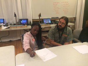 I met Johnny when he was demonstrating his station at the Texas Commission on the Arts Conference. He started teaching classes with us shortly after that and we found that his technique and personality were perfect for the students that we work with in our New Media Arts classes. Johnny uses a blend of storytelling, hands-on art making, and digital tools. He has a knack for finding the creative in anyone given enough time to work with them.