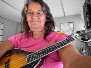 As Joanne tells it, “I was invited … by my friend [Art Spark artist] David Romero. I had initial misgivings because I did not have a disability and was concerned that I would be taking up a space from some other person who had more right to be there. But that is not what happened at all. I learned that the word ‘inclusive’ really means ‘everyone is welcome’ including me.” Perhaps, she fell in with us so well precisely because of her keen awareness to share the spotlight. True to form, she practiced the art of stepping up and stepping back, allowing space for fellow performers to shine. But her support extended beyond mere courtesy. She genuinely engaged with her peers; offering insight, positive comments, and even at times writing a tune in response.