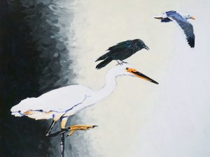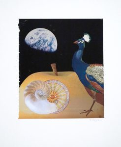 Michael Golden is an artist living and working in Carmine, TX. Michael went to the University of Notre Dame, later dropping out of med school to be an artist. He ended up in Houston, becoming a professor at Houston Community College, where he chaired several visual arts programs. His images blend wildlife and birds with sacred geometry or starry skies. He has exhibited his art at the Painting Center and Artists Space in New York and recently had a retrospective of his work in Houston and in Chicago, at the Beverly Arts Center where he took classes as a child. His work is in several museum, corporate, and private collections. Golden currently teaches with the Arts for Rural Texas Program, is learning about the native plants where he lives, and continues to volunteer as a wildlife rehabber.