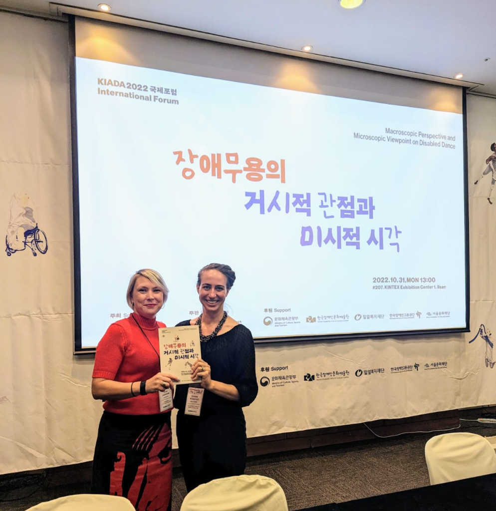 The next day was totally different. It was an international forum in which we discussed laws and policies around disability rights, and heard from practitioners and lawmakers from Israel, South Korea, New Zealand, and the USA about the state of field and disability art ecosystems. In this event Emmaly and I got to also talk about our book “Breadth of Bodies: Discussing Disability in Dance.” It was so cool to see the book title translated into Korean.