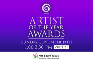 Art Spark Texas is pleased to announce the 2021 Artist of the Year Awards Ceremony taking place Sunday, September 19, 2021, from 1:00 to 3:30 PM CDT in Austin.