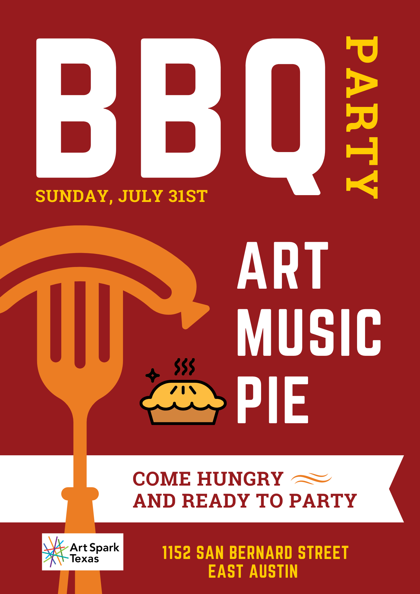 Join us at Art Spark Texas for an amazing evening fundraiser featuring that most Texas of cuisines – Barbecue – generously provided by Kent Black’s BBQ! We expect this event to sell out, so make sure to reserve your ticket ($10) here today.