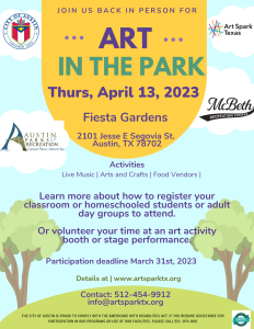 If you have any questions about the event, contact Art Spark Texas at 512-454-9912 or [email protected].