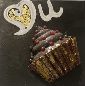 mixed-media art features painting of words heart you and 3-D cupcake
