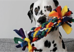 photo of Dalmatian gripping dog toy in mouth