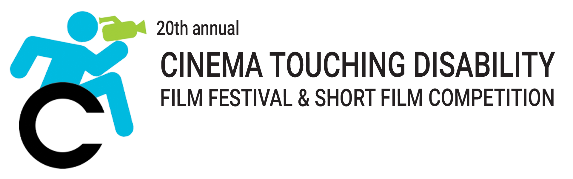 Image Description: Icon of a person in a wheelchair in motion with a video camera in hand. Text reads, “20th annual Cinema Touching Disability Film Festival & Short Film Competition.”