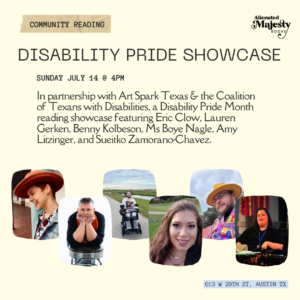Hosted by Alienated Majesty Books, Coalition of Texans with Disabilities, and Art Spark Texas.