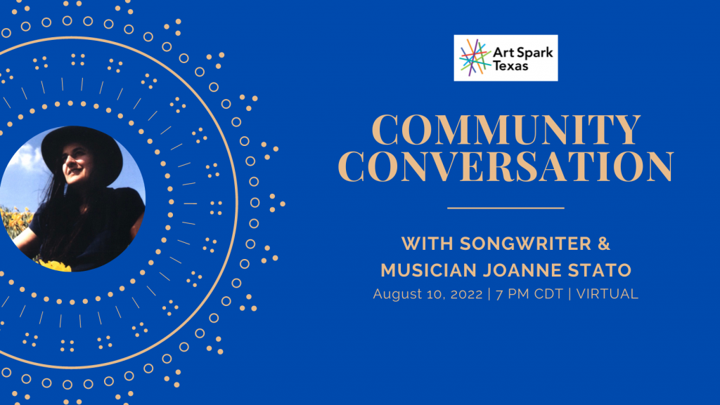 Ever wonder how a songwriter comes up with a good opening line? Join us Wednesday, August 10th, (7-8:00 PM CDT) for a virtual Community Conversation with August Artist