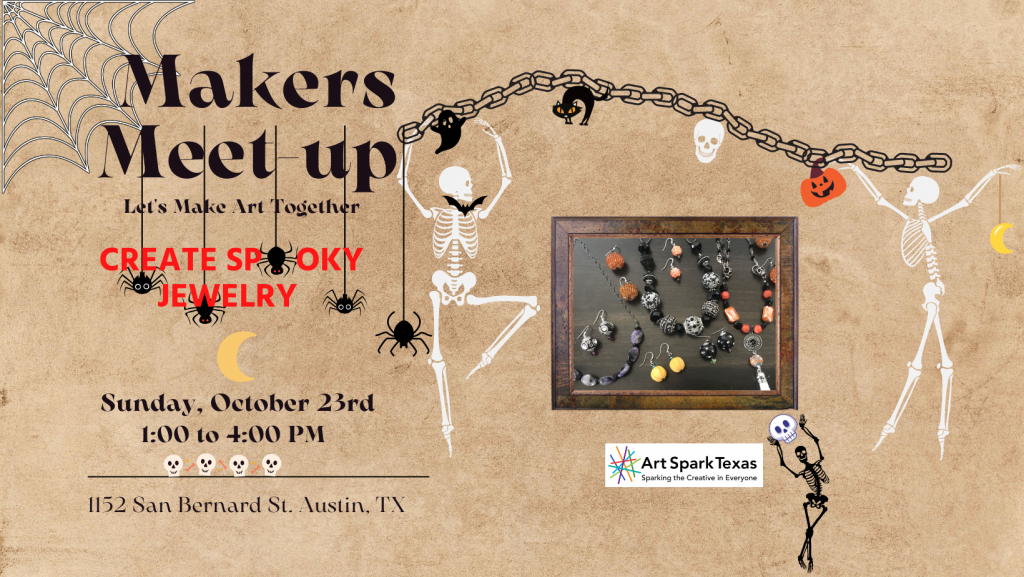 Don’t be haunted 👻 by FOMO! Join us at our free monthly Makers Meet-Up to make spooky jewelry. All are welcome teens to adults. Join virtually here: https://global.gotomeeting.com/join/291846373