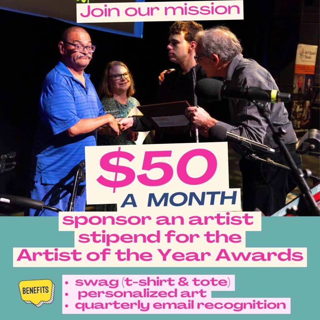 Your monthly gift ensures artists with disabilities have consistent opportunities to create, perform, exhibit, and celebrate. Be a part of the next 30 years!