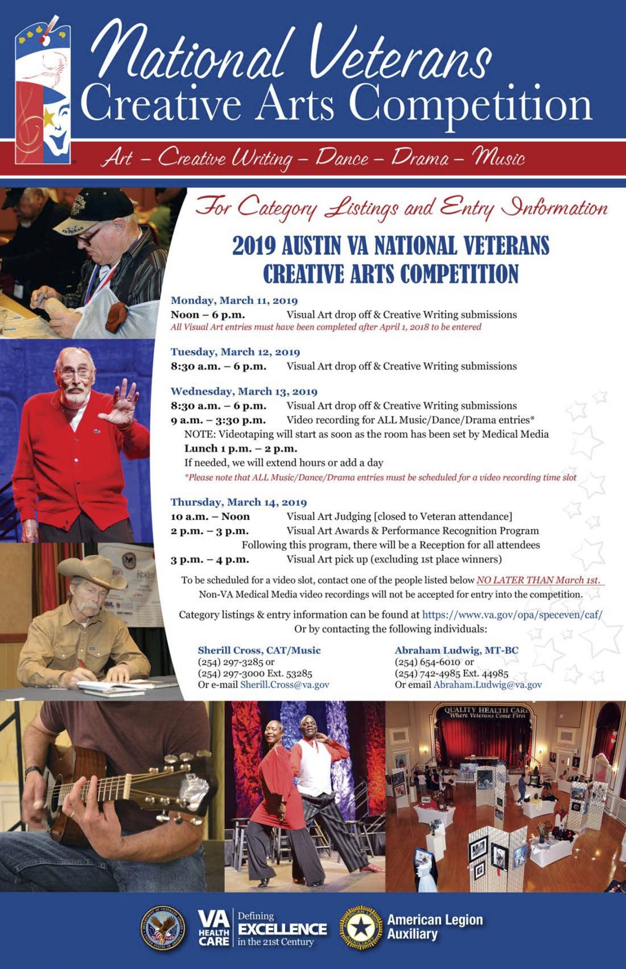flyer for 2019 Austin VA National Veterans Creative Arts Competition